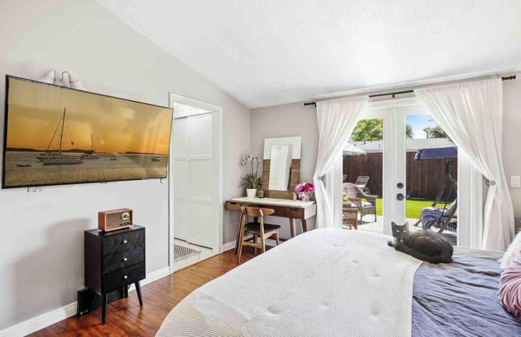 Mid Century Modern single story home in College Park! Welcome home to 2256 Colgate complete with exterior upgrade including newer composite siding, new rolling privacy fence and dual pane windows throughout. Enter through your front Dutch door into a family room with fireplace, vaulted ceilings and a flood of natural sunlight. The kitchen features granite countertops, a Dacor stovetop and an additional Dutch door allowing ultimate indoor/outdoor living to the covered patio. The master bedroom retreat has another set of French doors into the private yard and the secondary bedrooms are also generously sized. Entertain in the oversized yard with eco friendly turf landscaping. No HOA, centrally located with close proximity to bike trails, the best beaches in Orange County and shopping/dining. Come quick!